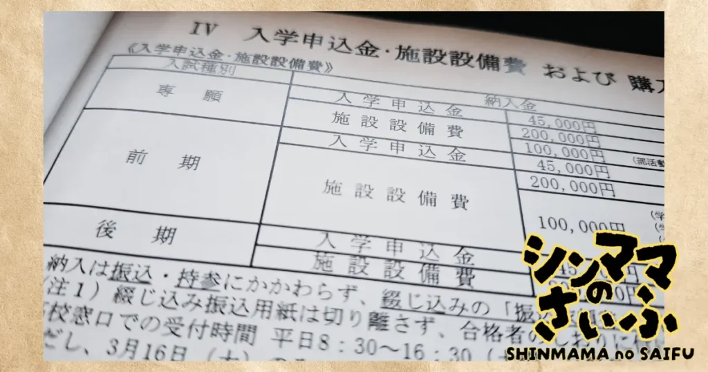 無事私立高校に合格し、手にした資料には必要なお金が思った以上にたくさんありました。